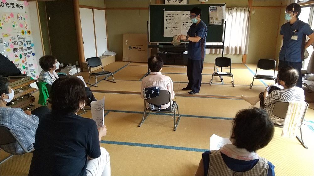 参加されている方皆様それぞれ関節の悩みを抱えておられ、講話の後は相談会のようになりました。巻き爪の相談や立ち上がりの時のポイントなど、今回、少人数ではありましたが、一人ひとりと丁寧にやり取りができ悩みを聞くことができたと感じます。今後の生活に活かしていただけるのではないかと感じました。曽井地区の皆様、ありがとうございました。